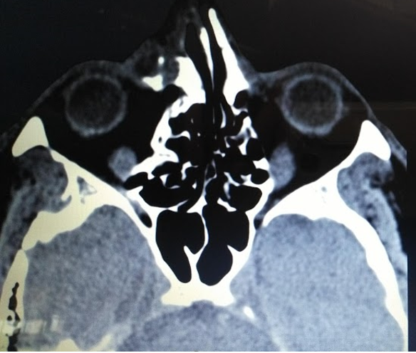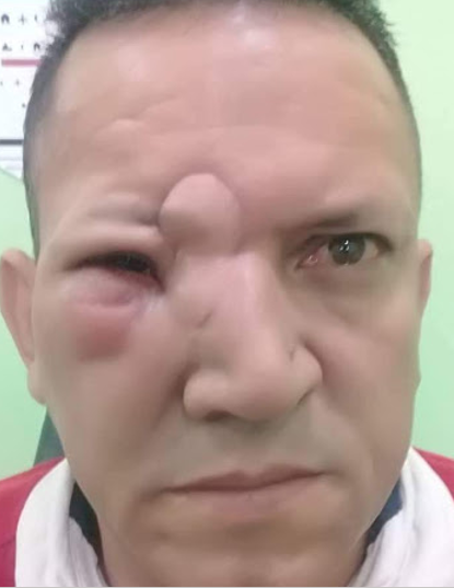 Paciente masculino de 49 años de edad procedente de área urbana refiere inicio de enfermedad actual de 1 día de evolución cuando presentó dolor y disminución de la agudeza visual posterior a trauma directo con objeto expedido a alta velocidad, por lo que consulta.